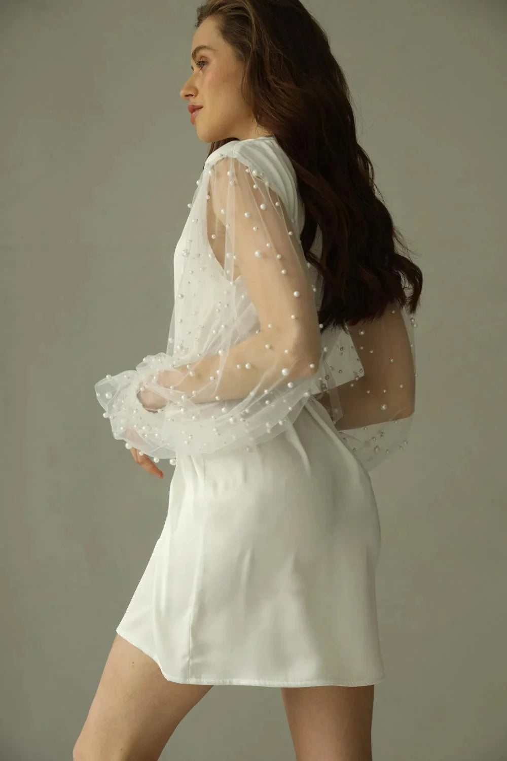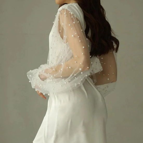 Brautkimono mit Perlen auf transparenten Ärmeln