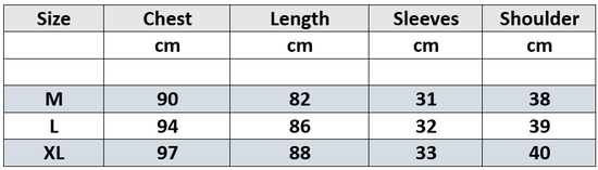 Sizes: Please see the Size Guide in the picture section for your reference and note that the sizes stated in the Size Guide may be smaller than the usual same sizes of S, M, L & XL in the US/Europe. Please do read the measurements.