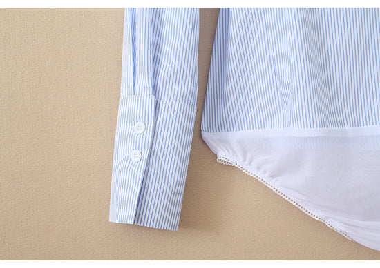 Long Sleeve Shirt Bodysuits (Two Color options - White or Blue Stripes)